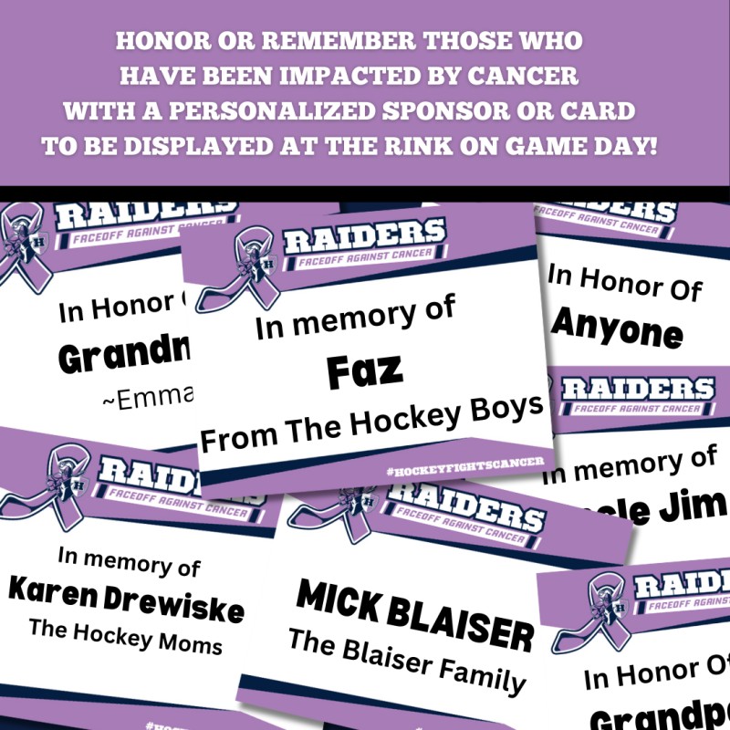 2026 In Memory Of... Cancer Game Sponsor Cards